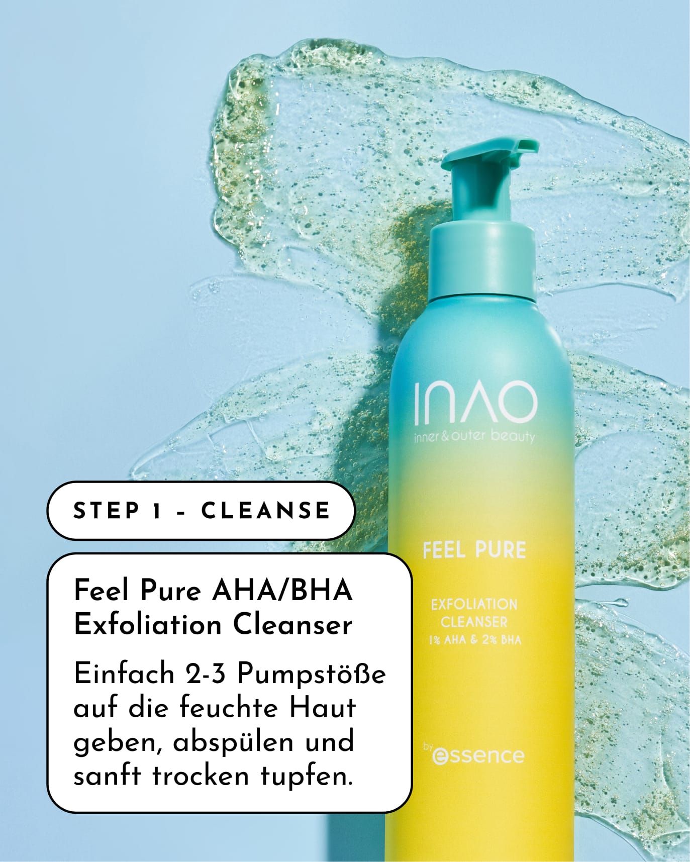 Mit Wasser aufschäumen & das Gesicht reinigen. Mit einem sauberen Handtuch trocken tupfen.Cleanse - Feel Pure